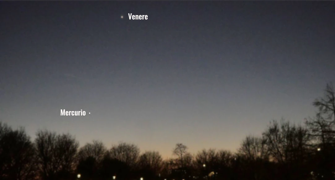 Rintracciare Mercurio nel chiarore del crepuscolo Questo mese di marzo 2025 offre l’opportunità di assistere a tre fenomeni astronomici quali l’elongazione di Mercurio, massima l’8 marzo; l’eclissi di luna, il 14 e l’eclissi parziale di sole, il 29. Si tratta certo di fenomeni non eclatanti, ma comunque di sicuro interesse per gli astrofili e più in generale per i curiosi che il cielo lo osservano semplicemente ad occhio nudo o con il binocolo. Sarà favorito chi abita al Nord, mentre per chi osserva dal prediletto territorio dell’alto crotonese, per motivi geografici, i tre fenomeni saranno di difficile accesso. In particolare, per scorgere Mercurio nel chiarore del crepuscolo occorre avere l’orizzonte Ovest completamente sgombro. E occorre che il pianeta sia ad una adeguata distanza angolare dal sole. In questi giorni è già rintracciabile con una magnitudine apparente di -0,5, una mezz’ora dopo il tramonto, sotto Venere di magnitudine -4, nella costellazione dei Pesci. Sabato 8 marzo la distanza dal Sole sarà di 18° e sarà relativamente facile vedere questo pianeta, la cui vicinanza con il Sole, lo rende davvero sfuggente. Arrischiandosi a puntare un telescopio – con il rischio per lo suo specchio e la vostra retina - è possibile scorgere la sua fase, ora al primo quarto, analoga a come appare Venere, o la Luna. Ma non si scorgerà alcun altro dettaglio, così sarà meglio accontentarsi di rintracciare il fuggevole dio Ermes nel bagliore successivo al tramonto. Di seguito una ripresa del 5 marzo dalla pianura milanese e una la congiunzione con Venere del prossimo 8 Marzo.