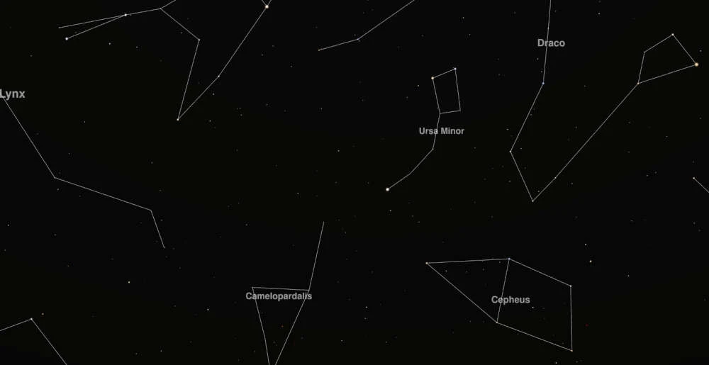 Volendo “toccare le stelle” allo Zenit prevalgono le figure dell’Orsa Maggiore, del Boote e dei Cani da Caccia con Cor Caroli, una delle più graziose stelle doppie facilmente risolvibile con un telescopio di piccole dimensioni. A Nord anche il Dragone, a ridosso dell’Orsa Minore, si presenta in buone condizioni di osservabilità ed è una delle costellazioni più grandi della volta celeste. Da questa regione ben alta nel cielo, prolungando verso sud l'arco segnato dal timone del Grande Carro si possono facilmente individuare la luminosissima stella arancione Arturo della costellazione del Boote e la bluastra stella Spica nella Vergine. Arturo è una gigante distante 37 anni luce dalla Terra ed è una delle stelle più brillanti dell'emisfero boreale che si lascia ammirare in tutto il suo splendore in queste notti di primavera. Partendo dalle prime due stelle contigue alla coda, Phecda e Megrez, e prolungando il loro allineamento in direzione sud si può facilmente ritrovare la stella Regolo, per molti secoli conosciuta come "Cuore del Leone", una delle più luminose nel cielo notturno. Il grande mestolo, così viene chiamato dagli anglosassoni l'asterismo dal Grande Carro, si alza verso le parti più alte del cielo e ci aiuta a ritrovare la Stella Polare, mentre la costellazione di Cassiopea, dalla parte opposta al Grande Carro rispetto alla Polare, con il suo un gruppo di stelle dalla caratteristica forma di W si abbassa verso l’orizzonte lungo il ramo della Via Lattea.